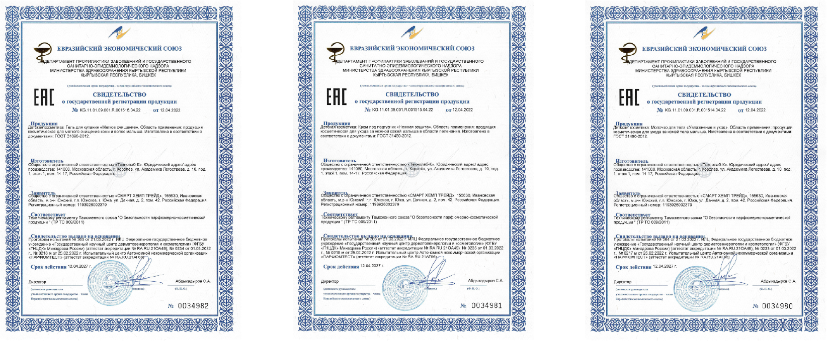 Молочко предназначено для ухода за кожей тела малыша.